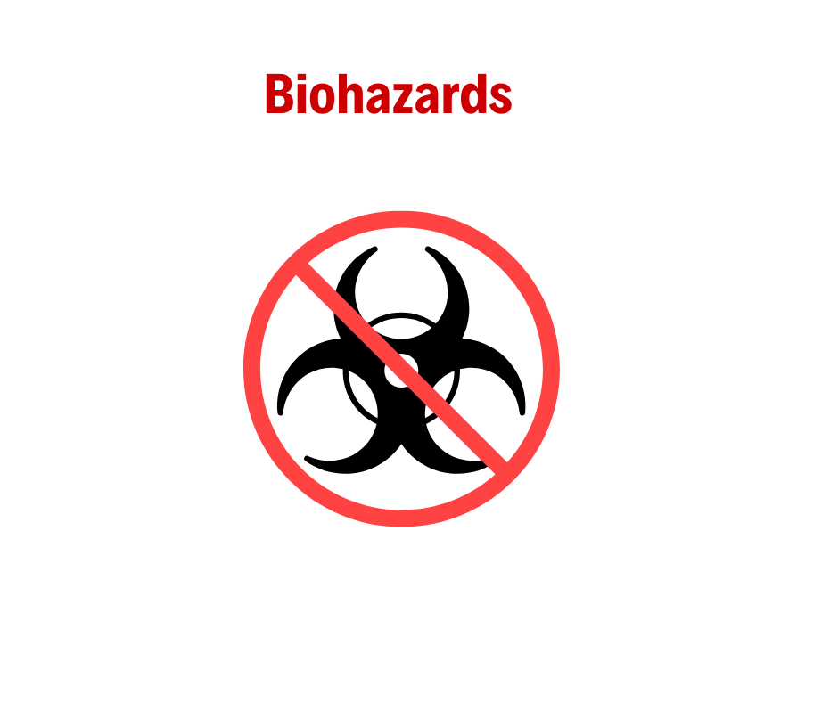 Biological substances that may contain contagions or other hazardous substances. Examples: Bodily Fluids, Cell Cultures, Lab Reagents, Medical Specimens, Tissue Samples, Tear gas, Human Remains