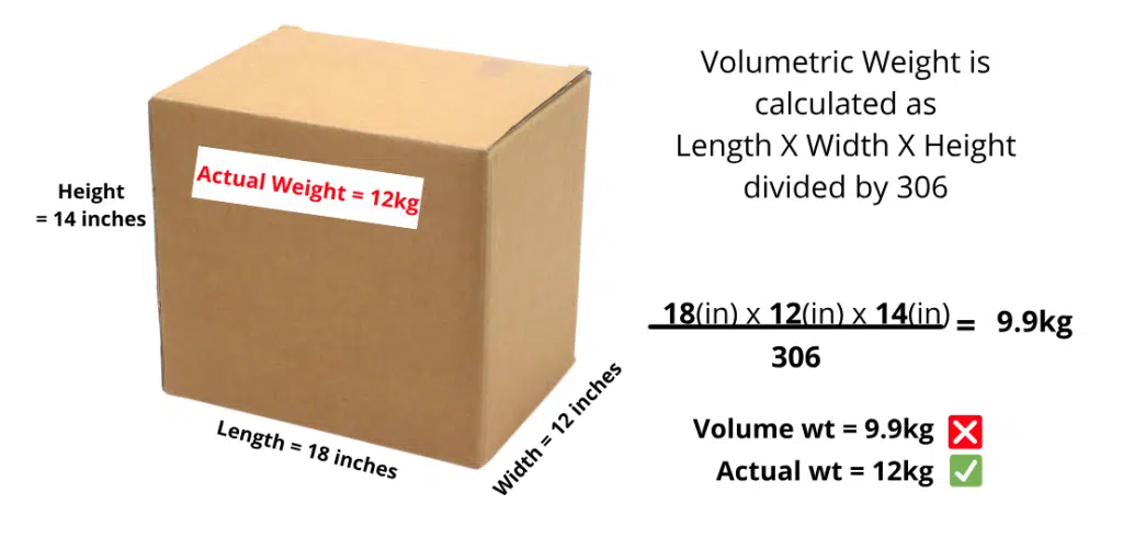 In situations where the actual weight is larger than the volumetric weight (commonest), your packages will be charged based on the actual weight.